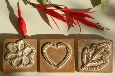 The stone is shaped, coloured, then etched to reveal as stars the original white colour of the stone. 8 x 5½cm (3mm thick).