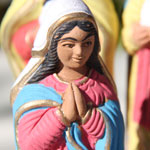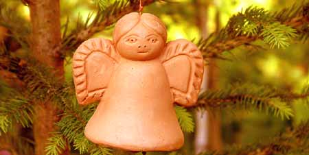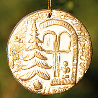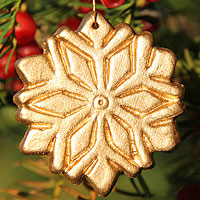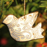 Hand made from terracotta and painted gold and white. Approximately 7cm tall. Comes in small giftbox.