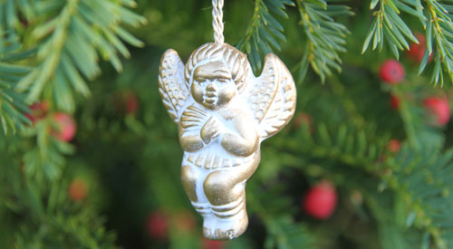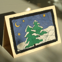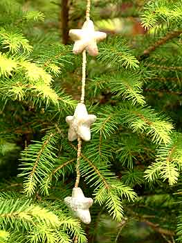 The pure simplicty of origami craft: Two angel shapes created from carefully folded hand made white cotton-paper card, and enhanced with real wood heads. Fine jute twine hangings. Set of two angels: 15 x 12½cm and 10 x 9cm. Sent in a cardboard box.