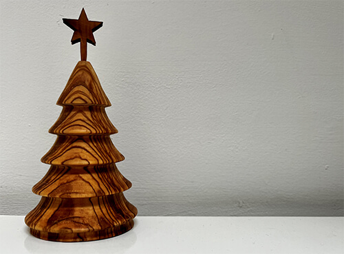 Hand made in the ancient city of Nicaea, where the Christian Nicene Creed was ecumenically agreed in the year 325. Nicaea, now known as Iznik, is in north-west Turkey. The fine olive wood is rescued from groves cleared for building plots and our trees lathe-cut by Syrian refugees living locally.