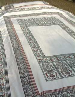 The patterns are applied to the white fabric by use of small printing blocks carved from wood. This blockprinting process is done by hand, one block at a time, so your duvet will have real character and life. For each duvet cover, eleven different blocks are needed to build up this design (see picture BELOW).